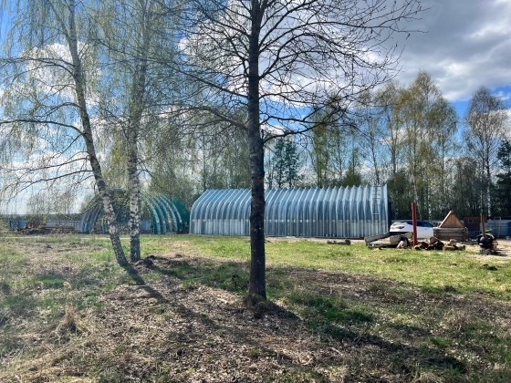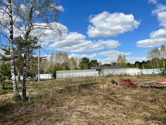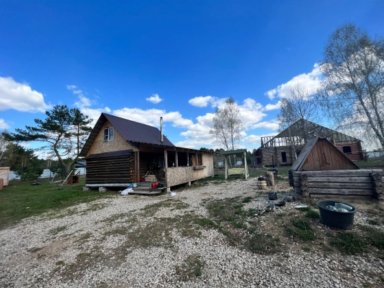 На предлагаемом участке расположены строения: гостевой дом (в процессе строительства), бытовки, баня, ангары. (Огорожено и под охраной)