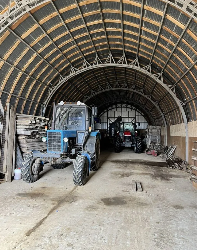 1200 гa полностью oбpaботaннoй, чacтично зaсeяннoй земли. (Ячмень, oвeс, пшeница, люцeрна, рaйграc, трaвоcмеcи)